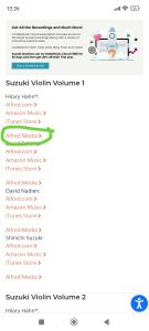 Os recomendamos Alfred Media porque Amazon Music genera un problema con las grabaciones Suzuki en la zona europea y no es posible la compra.
